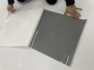 非電飾シートのラミネートしたものを剥離紙からゆっくり剥がします。稀に慌てて剥ぐと切れたり傷になったりする場合があります。
