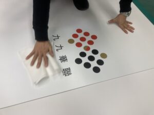 テーブルの方がいいのですが一般の方は床の方が貼りやすいとお客様が仰っておりました。