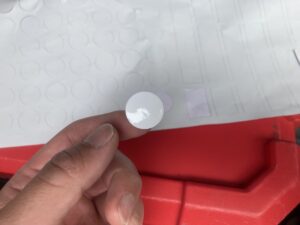 あらかじめ20mmから30mmの径のラミネートしたシールを作ります。