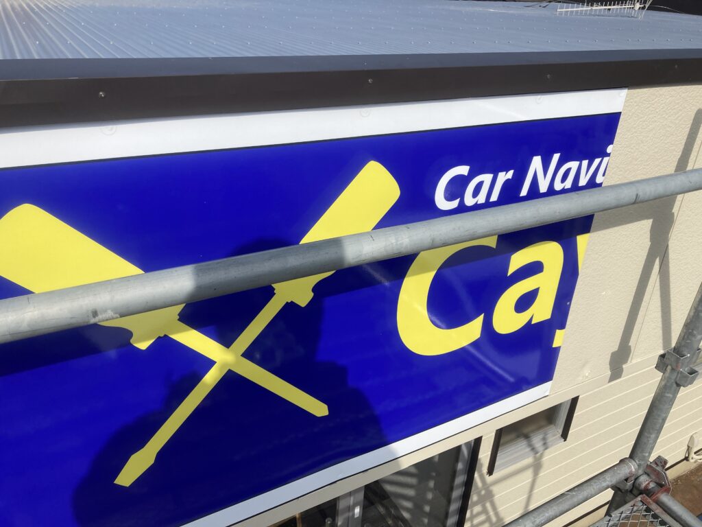 小さい看板で600mm×900mmぐらいの地上作業できる場合はお客さま自身で出来る場合がありますが、今回の様な場所や大きなものは専門業者にお問い合わせください。