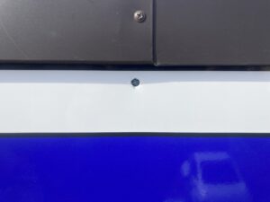 シールを貼るとこかんな感じに隠れて雨などの影響などからビスを守りまりながら先ほどのビスのシルバーの頭が見えなくなります。