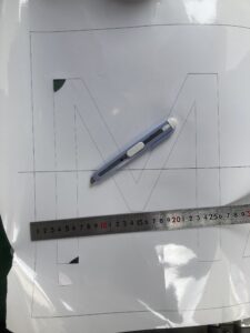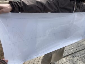 現場に持っていくカルプ文字は1文字1文字バラバラで持っていくのですが、壁に取り付ける時に文字の位置決めが大事です。