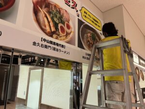 看板広告などの広告物は、お客様と丁寧に打ち合わせを行い、使用時の希望の施工方法や目的に合わせて最適なデザインや内容を一緒に決めていきます。イベントや展示会、式典などさまざまな場面で使用される看板広告には、多様な種類と設置方法があります。例えば、新商品の宣伝や企業紹介、主催者やスポンサーの掲示など、それぞれの目的や場所に応じて最適な看板を選ぶことが重要です。適切な看板の種類や配置、向きなどの動線、防炎ラベルの有無などが必要になります。イベントで用いられる看板にはどのような種類や素材があり、イベント看板を作る際の、基礎知識を簡単に説明していきます。今回の広告物はターポリンをご希望で、ビス穴や強力両面テープを使えない現場での設置となりました。どうやってターポリン取り付けるんだって話になりますが、私たち専門業者は一般の方が持っていない道具、知識でクリアしていきます。