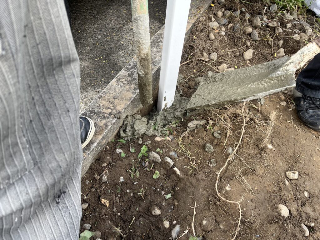 コンクリートをよく奥まで流し込んで固めていきます。