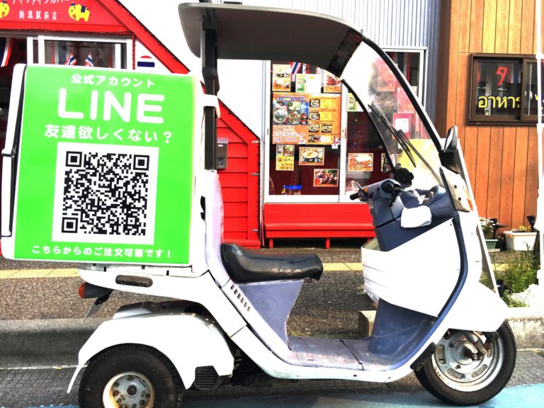 デリバリー(出前)バイクにステッカーで広告