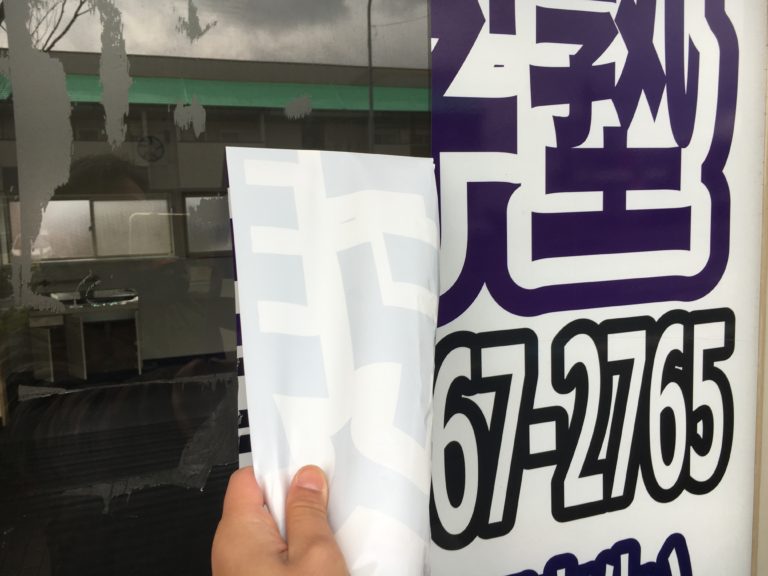 ガラスフィルムの剥ぎ、看板掃除はお気軽に!