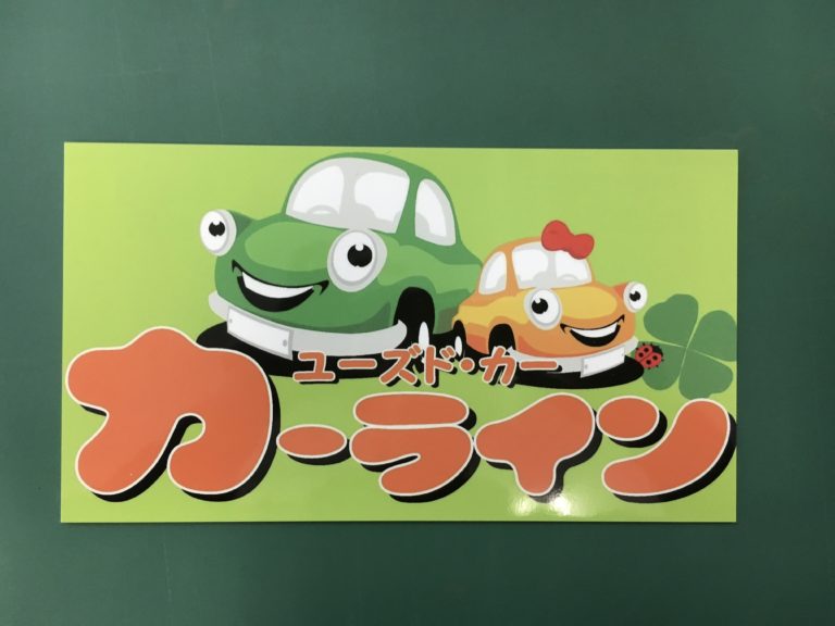 お店の広告が入ったナンバープレートをデザインしてアピールしたい!そんなお声をカーライン様からいただいて制作いたしました。