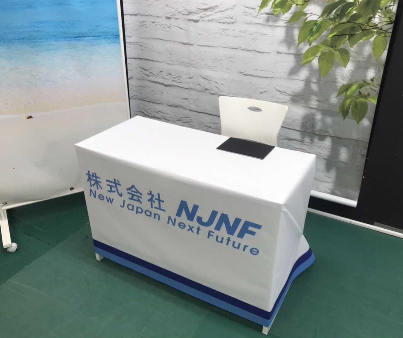展示会や説明会は勝負時であるからこそ、魅せたい物を展示するテーブルに、名入れテーブルクロスはいかがですか?