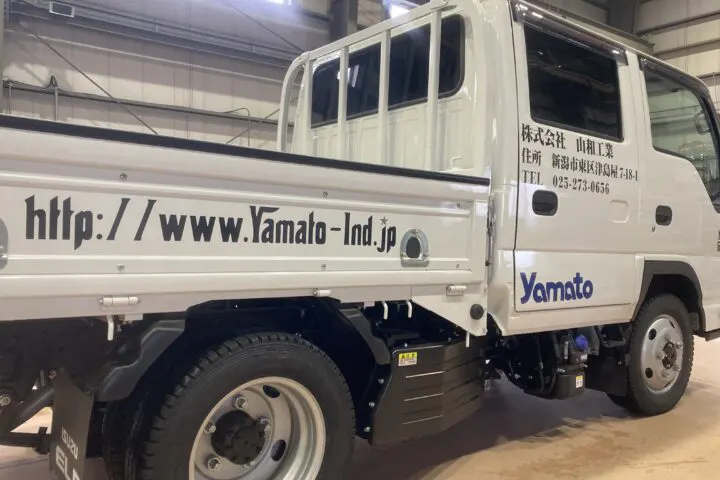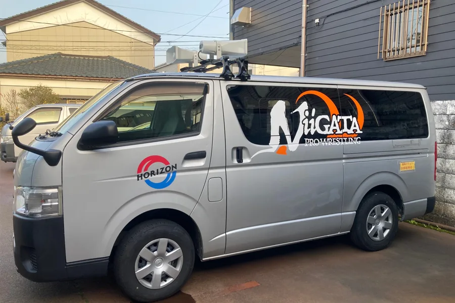 企業様向けに商業広告宣伝車の制作。 文字やロゴのみのカッティングシートは車両で用いる場合に、